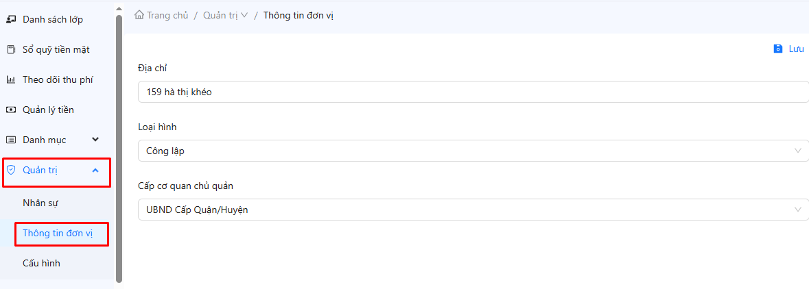 - Phần mềm đã có thiết lập thông tin đơn vị theo thông tin Thầy/Cô cung cấp ban đầu