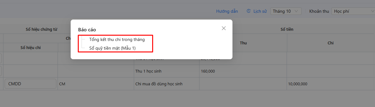- Nút In báo cáo: In trực tiếp trên phần mềm.
