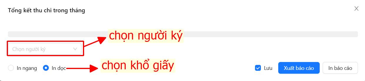 - Có thể thiết lập chức vụ ký trong mẫu báo cáo bằng cách click chuột vào chọn người ký (chỉ cần thiết lập 1 lần).